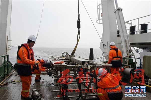 本次“海洋六號(hào)”南極科考,是自1990至1991年我國(guó)首次南極南大洋綜合地質(zhì)地球物理調(diào)查后第二次南極海域綜合地質(zhì)地球物理科學(xué)考察。圖為科考人員完成多道地震調(diào)查后,從后甲板收回科考作業(yè)裝備。