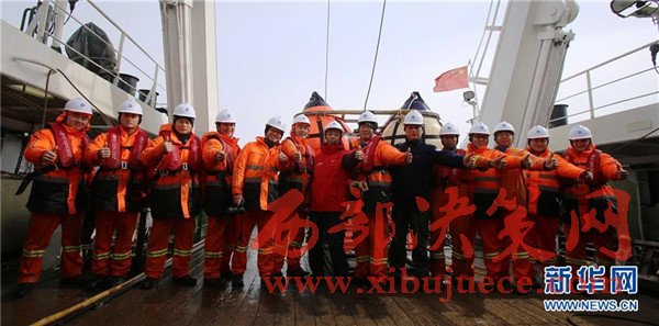 “海洋六號(hào)”科考人員完成多道地震調(diào)查后擺出慶賀手勢(shì)。“海洋六號(hào)”綜合調(diào)查船是由我國(guó)自主設(shè)計(jì)建造,集地震、地質(zhì)調(diào)查等多項(xiàng)調(diào)查功能于一體的綜合地質(zhì)地球物理調(diào)查船。它計(jì)劃2月初離開(kāi)南極半島海域啟程返航,今年4月返抵廣州。