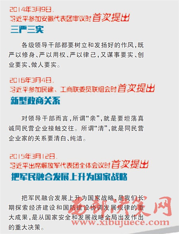 編者按:每年全國(guó)兩會(huì)期間,習(xí)近平總書(shū)記都要深入團(tuán)組參加討論、審議,與代表委員們共商國(guó)是,圍繞治國(guó)理政新理念新思想新戰(zhàn)略,發(fā)表了一系列重要講話,深刻回答了在新的歷史條件下黨和國(guó)家發(fā)展的重大理論和現(xiàn)實(shí)問(wèn)題,包括五大發(fā)展理念在內(nèi)的治國(guó)理念和執(zhí)政方略,內(nèi)涵不斷豐富,實(shí)踐不斷深入。