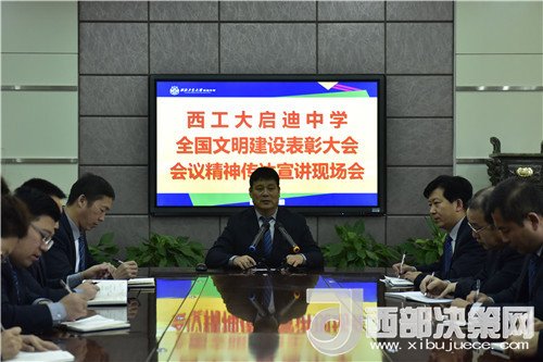 11月17、18日,中央電視臺(tái)《新聞聯(lián)播》的頭條新聞讓西北工業(yè)大學(xué)啟迪中學(xué)內(nèi)外為之沸騰:“王萬斌校長作為第四屆全國未成年人思想道德建設(shè)工作先進(jìn)工作者的受獎(jiǎng)代表,在人民大會(huì)堂接受習(xí)近平總書記等黨和國家領(lǐng)導(dǎo)人的接見了。”西北工業(yè)大學(xué)啟迪中學(xué)師生們欣喜而熱烈地議論著,初冬的寒氣卻絲毫沒有影響師生們的熱情。