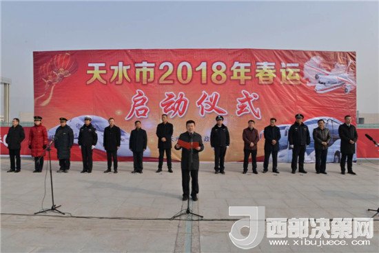 西部決策網(wǎng)-西部大開(kāi)發(fā)訊(帥華鋒 通訊員 馬存福 王世強(qiáng))2月1日上午10時(shí),天水市2018年春運(yùn)啟動(dòng)儀式在天水南站舉行,為期40天的春運(yùn)工作正式拉開(kāi)帷幕。市政府副市長(zhǎng)郝文杰參加啟動(dòng)儀式并宣布天水市2018年春運(yùn)工作正式啟動(dòng)。市政府黨組成員、市公安局局長(zhǎng)馬瑛主持啟動(dòng)儀式。