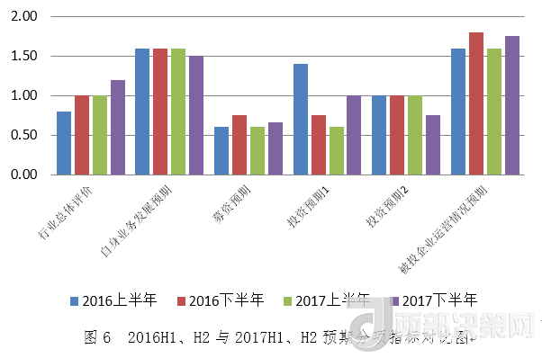 相較于募資、投資、退出指標(biāo)的微降,機(jī)構(gòu)信心指標(biāo)上漲顯示投資人對2018年北京地區(qū)股權(quán)投資發(fā)展充滿了信心。從預(yù)期分項指標(biāo)看,雖然指標(biāo)所處水平顯示投資人認(rèn)為2018年上半年行業(yè)總體仍將保持平穩(wěn)發(fā)展態(tài)勢,對自身業(yè)務(wù)發(fā)展預(yù)期、募資預(yù)期、投資預(yù)期保持中性,但是行業(yè)總體評價、被投企業(yè)運(yùn)營情況預(yù)期、募資預(yù)期、投資預(yù)期這四個指標(biāo)均較上期有所增長,而自身業(yè)務(wù)發(fā)展預(yù)期指標(biāo)和投資預(yù)期指標(biāo)較上期有所下降,綜合顯示投資人對行業(yè)和自身業(yè)務(wù)發(fā)展謹(jǐn)慎樂觀的態(tài)度。