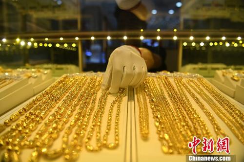 圖為一金店內工作人員正在整理黃金飾品。中新社記者 陳超 攝