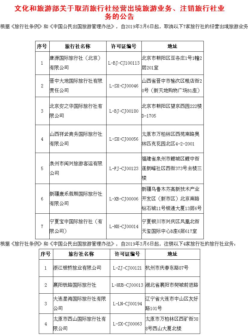 文化和旅游部近日發(fā)布公告,取消7家旅行社的經營出境旅游業(yè)務,注銷3家旅行社的旅行社業(yè)務。記者注意到,截至目前,今年文化和旅游部共取消30家旅行社的出境游業(yè)務、注銷11家旅行社的旅行社業(yè)務。戳圖看詳細黑名單。