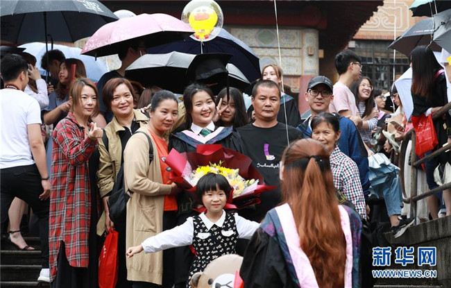 5月4日,華南農(nóng)業(yè)大學(xué)畢業(yè)生與家人在校園里拍照留念。 當(dāng)日是五四青年節(jié),在位于廣州的華南農(nóng)業(yè)大學(xué)校園里,該校2019屆畢業(yè)生開始拍攝畢業(yè)合影,留下青春的紀念。 新華社記者 王瑞平 攝