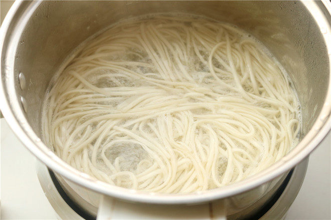 3.煮面,湯鍋加水燒開,然后下入掛面。