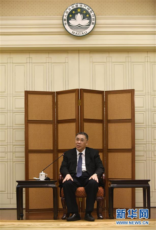 澳門特區(qū)行政長官崔世安在澳門特區(qū)政府總部接受采訪(11月21日攝)。新華社記者 徐亮 攝