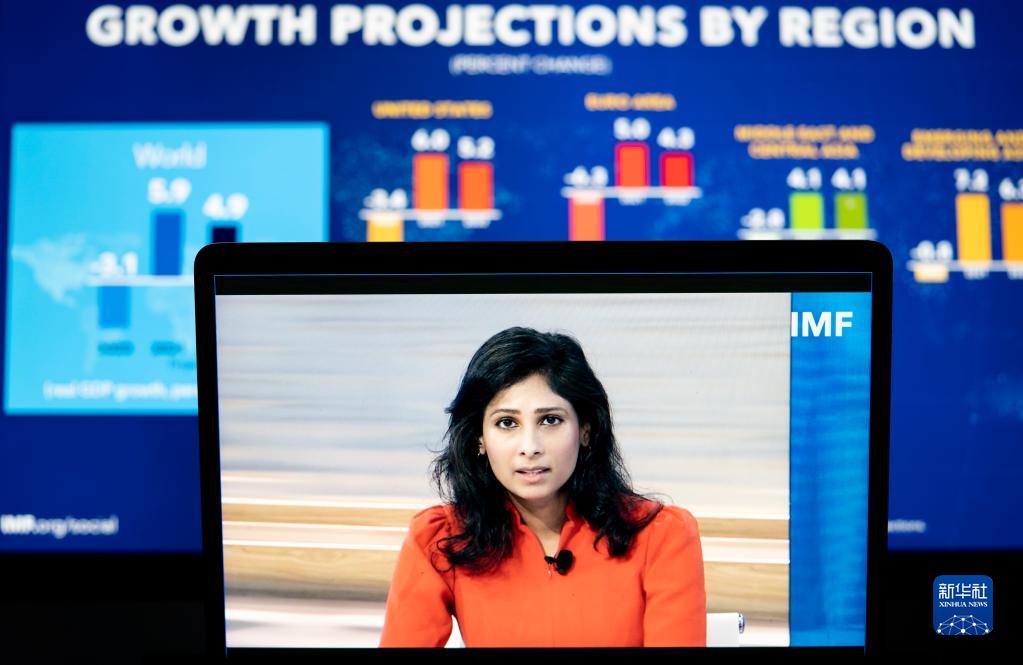 10月12日,國際貨幣基金組織(IMF)首席經(jīng)濟學家吉塔·戈皮納特在美國華盛頓出席線上視頻新聞發(fā)布會。新華社記者 劉杰 攝