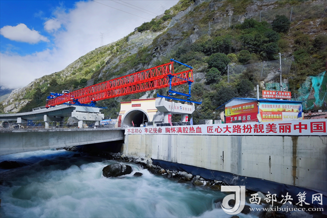 西部決策網(wǎng)訊11月29日,國(guó)道318線康定市過境段公路工程起點(diǎn)互通立交連接線最后一片T梁平緩地躺在康定河水面。至此,中鐵一局四公司國(guó)道318項(xiàng)目所有預(yù)制梁全部架設(shè)完畢。