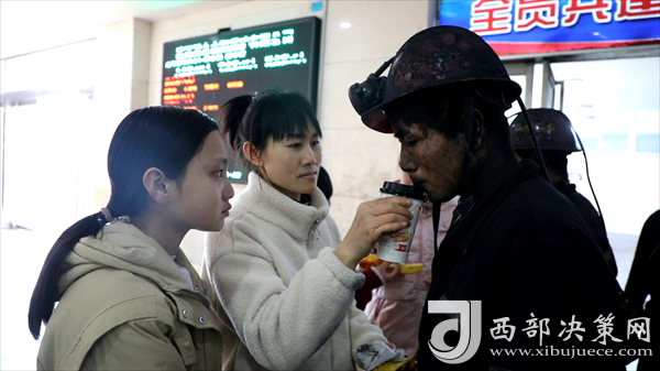 “來(lái)啦,都過(guò)來(lái)了!”“你爸在這呢”不知道哪位礦嫂喊了一聲,大家都向前擠了擠,分別在人群中找尋自己熟悉的親人,她們激動(dòng)的湊上前去,用手中的濕巾和毛巾替礦工們卸妝濃濃的“工作妝”,把手中的面包、奶茶、香蕉、蘋(píng)果送到“黑”爸爸口中??粗粡垙埡诤鹾醯哪橗?,幾乎不能辨認(rèn)的五官,家屬們有的哽咽著,有的眼淚不聽(tīng)話的流下來(lái),他們把親人的那份辛苦、那份不易看在眼里,疼在心里。
