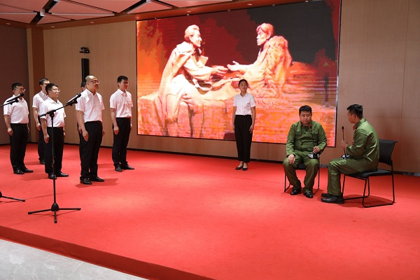“還我青島,保衛(wèi)主權(quán),國家有難,匹夫有責……”機電物資中心組建了20多人的團隊,將《建黨偉業(yè)》中的經(jīng)典片段搬上了舞臺,讓臺下觀眾聽來無不熱血沸騰、慷慨激昂。