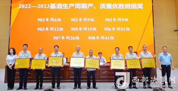 會(huì)上,張周虎宣讀了《關(guān)于對(duì)2022—2023基酒生產(chǎn)周期產(chǎn)質(zhì)量勞動(dòng)競(jìng)賽獲獎(jiǎng)車(chē)間、班組進(jìn)行表彰獎(jiǎng)勵(lì)的決定》。與會(huì)領(lǐng)導(dǎo)為受表彰的獲獎(jiǎng)車(chē)間、班組頒發(fā)獎(jiǎng)牌。