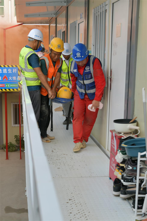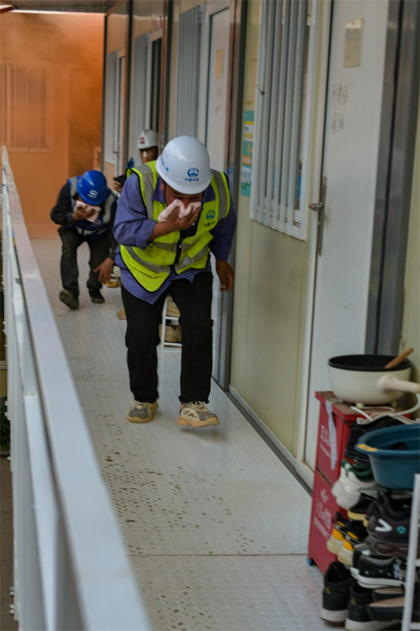 11月9日是第32個全國消防日。這次消防演練模擬火災發(fā)生后如何使用干粉滅火器、干沙滅火,生活區(qū)宿舍起火員工俯身毛巾捂住口鼻逃生、昏迷受傷員工的轉移救治,以及消防救援機構的介入救援等方面進行演練。項目監(jiān)理單位點評時認為,此次演練基本上是按照實景進行的,進一步增強了項目的應急應變、團隊協(xié)調和處置保障能力,為應對突發(fā)事件積累寶貴經(jīng)驗,保證安全生產(chǎn)工作全面落實。