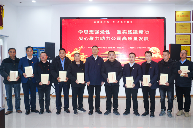 現(xiàn)場活動后,徐生輝在項目部會議室以《學思想強黨性 重實踐建新功 凝心聚力助推公司高質(zhì)量發(fā)展》為題,為項目黨員講授主題教育專題黨課,開展調(diào)研交流,并給黨員贈送學習書籍。