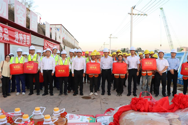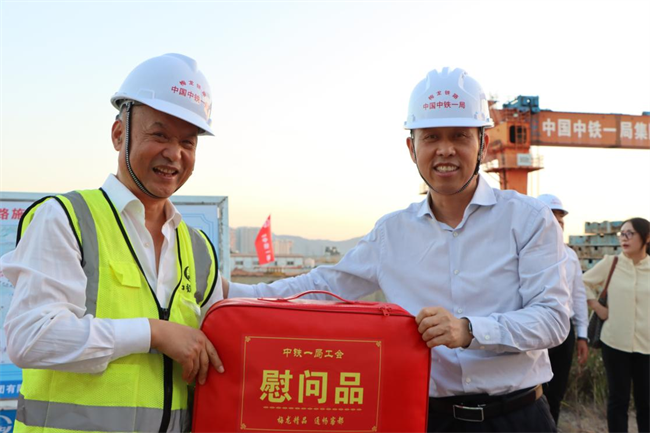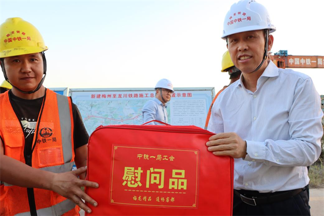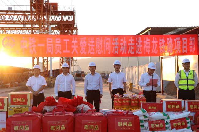 年終歲寒,元旦將至。為深入貫徹落實(shí)黨的二十大和中國(guó)工會(huì)十八大精神,把黨的關(guān)懷和公司工會(huì)的溫暖及時(shí)送到廣大職工群眾的心坎上。12月11日下午,中鐵一局“員工關(guān)愛(ài)送慰問(wèn)”活動(dòng)走進(jìn)中鐵一局梅龍鐵路項(xiàng)目施工現(xiàn)場(chǎng)。中鐵一局黨委副書記、工會(huì)主席王新年,一公司總經(jīng)理韓勝,副總經(jīng)理、工會(huì)主席應(yīng)曉峰等共同為項(xiàng)目一線參建職工送去暖心關(guān)愛(ài)。