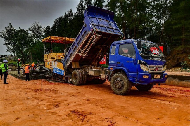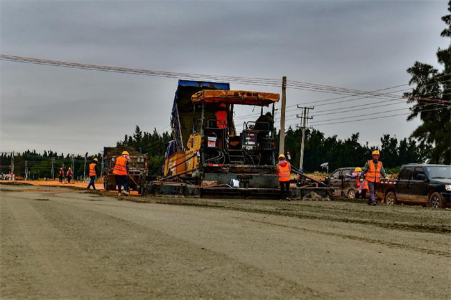 這次水穩(wěn)層攤鋪施工的是海濱一路,長(zhǎng)約1745米,路寬38米。該路段已于2023年3月31日開始施工,在先后完成軟基處理、路基工程、雨水管道、電力管道、給水管道工程后,開始了水穩(wěn)層攤鋪施工。