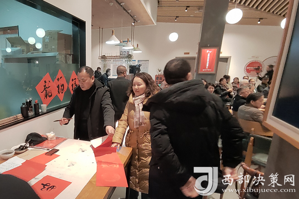 活動邀請中國書法家協(xié)會會員段曉華等書法家為大家現(xiàn)場寫對聯(lián)。紅紅的“福”字為龍年增添路許多色彩,大家都說,福字一到,來年定有好兆頭。