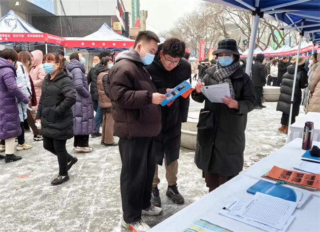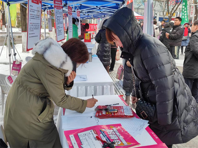 “你好,需要找工作嗎?”“可以了解一下我們企業(yè)”盡管大雪紛飛,天氣寒冷,但求職者們的熱情絲毫不減。求職者和招聘企業(yè)之間展開充分交流,招工、求職“供需兩旺”。不少求職者穿梭于各企業(yè)招聘展臺前,詢問工資待遇,填寫求職信息等。企業(yè)招聘人員熱情地向每一位求職者介紹企業(yè)崗位需求情況,講解薪資待遇、相關(guān)補貼政策等,現(xiàn)場人頭攢動,熱鬧非凡。