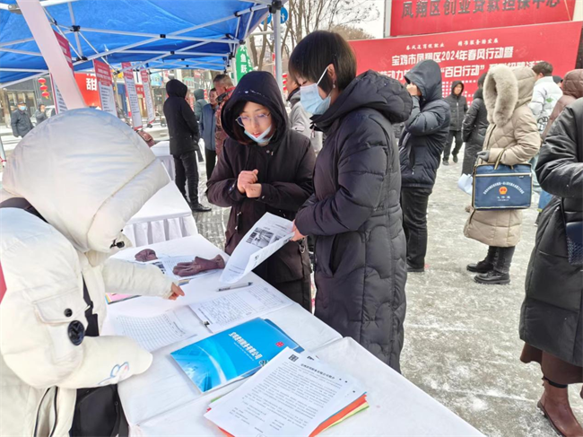 據(jù)了解,本次招聘會由鳳翔區(qū)人力資源和社會保障局、鳳翔區(qū)總工會、共青團鳳翔區(qū)委、鳳翔區(qū)婦女聯(lián)合會、鳳翔區(qū)工業(yè)和信息化局、鳳翔區(qū)鄉(xiāng)村振興局、鳳翔區(qū)退役軍人事務(wù)局聯(lián)合主辦,鳳翔區(qū)勞動就業(yè)服務(wù)中心、鳳翔區(qū)人才交流中心承辦。以“春風(fēng)送崗促就業(yè) 精準(zhǔn)服務(wù)助發(fā)展”為主題,線下招聘+線上招聘+直播帶崗齊發(fā)力,就是為鳳翔區(qū)域內(nèi)有用工需求的重點用人單位,特別是鳳翔白酒產(chǎn)業(yè)鏈企業(yè)、社區(qū)工廠、就業(yè)幫扶基地及省內(nèi)外有招聘需求的各類用人單位,返鄉(xiāng)農(nóng)民工、脫貧勞動力、高校畢業(yè)生、退役軍人、殘疾人、就業(yè)困難人員等重點群體,搭建供需平臺,實現(xiàn)市場化精準(zhǔn)對接,提供優(yōu)質(zhì)便捷的崗位對接服務(wù),促進重點人群實現(xiàn)更高質(zhì)量和更加充分的就業(yè)。線上線下邀請了144戶用人企業(yè),提供包括餐飲、會計、財務(wù)管理、數(shù)控、銷售、家政服務(wù)等崗位9064個,招聘會現(xiàn)場共吸引1000余人進場咨詢,活動現(xiàn)場共發(fā)放就業(yè)創(chuàng)業(yè)、職業(yè)技能培訓(xùn)、社會保險、勞動維權(quán)、創(chuàng)業(yè)擔(dān)保貸款等各類宣傳資料1000余份。線上當(dāng)日觀看直播瀏覽人次2000余人,投遞簡歷268份,初步達(dá)成就業(yè)意向408人。