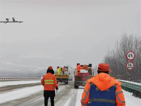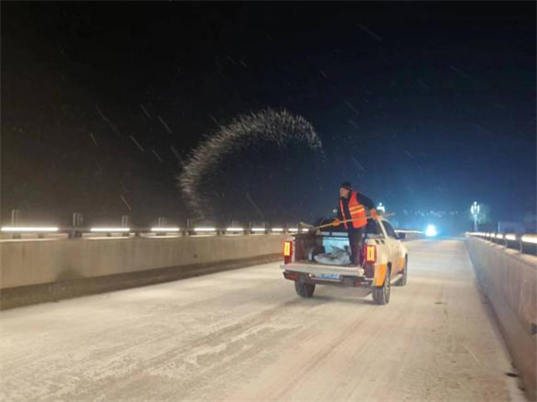 榆靖分公司在全線范圍內(nèi)采用機(jī)械為主,人工為輔的方法迅速開展除冰、除雪作業(yè),對(duì)結(jié)冰路段、坡道、彎道、匝道和橋面加大撒布融雪劑,尚未結(jié)冰路段進(jìn)行預(yù)防性撒布融雪劑,增加人員、增加頻次,采取多輪除雪作業(yè)。并積極與高速交警部門對(duì)接,配合交警在重點(diǎn)路段實(shí)施交通管制,在主線分流車輛至就近收費(fèi)站下高速,避免發(fā)生更多交通事故,安全路產(chǎn)巡查人員對(duì)事故、受困車輛進(jìn)行及時(shí)救助。(陳儒智)