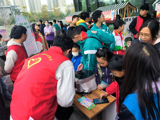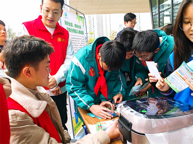 此次志愿服務(wù)活動(dòng)采用現(xiàn)場教學(xué)和有趣的垃圾分類挑戰(zhàn)賽等方式,向市民傳播垃圾分類的科學(xué)知識(shí)和綠色環(huán)保的生活理念。垃圾分類達(dá)人挑戰(zhàn)賽現(xiàn)場氣氛熱烈,答題挑戰(zhàn)隊(duì)伍排成了長龍,每位參與者都躍躍欲試、反復(fù)操練,期望在分類游戲挑戰(zhàn)賽中取得高分和心儀的獎(jiǎng)品。