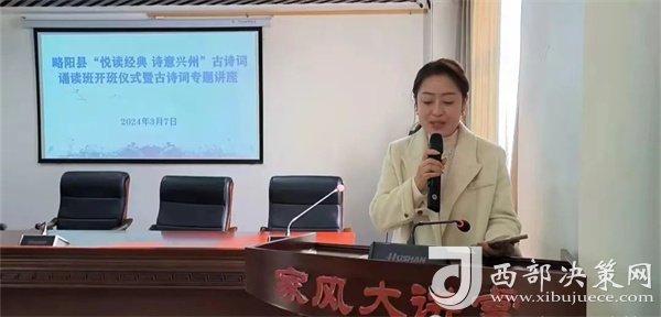 西部決策網(wǎng)訊3月7日,略陽縣文化和旅游局在圖書館六樓舉行“悅讀經(jīng)典 詩意興州”古詩詞誦讀班開班儀式暨首場(chǎng)古詩詞專題講座。來自全縣各部門單位以及鎮(zhèn)辦的詩詞朗誦愛好者共80余人參加了開班儀式。