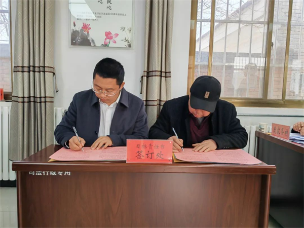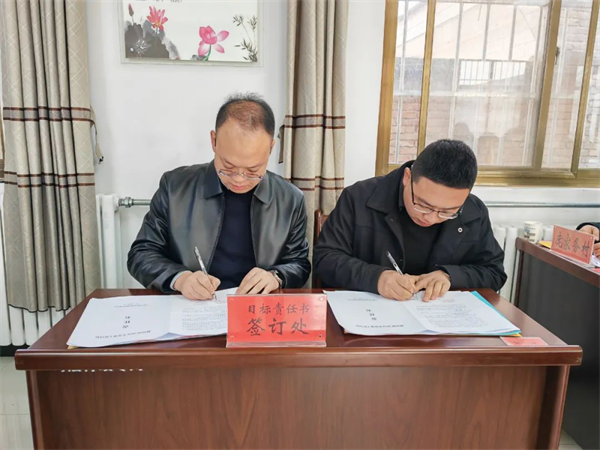 黨政主要領導與各村簽訂目標責任書,將指標轉(zhuǎn)化為工作目標,將壓力轉(zhuǎn)化為工作動力,將責任轉(zhuǎn)化為工作使命,確保全年工作高線達標。