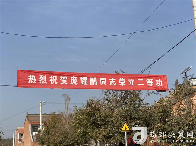 在喜慶的鑼鼓聲中,在現(xiàn)場(chǎng)父老鄉(xiāng)親的見(jiàn)證下,報(bào)喜團(tuán)成員抬著熠熠生輝的“二等功臣之家”的牌匾,懸掛起“熱烈祝賀龐耀鵬同志榮立二等功”的橫幅,來(lái)到龐耀鵬家門口,為龐耀鵬母親、岳父、岳母佩戴綬帶,頒發(fā)喜報(bào),送上牌匾和獎(jiǎng)勵(lì)金。座談交流中,報(bào)喜團(tuán)詳細(xì)了解了龐耀鵬家屬的身體和生活狀況,感謝他們?yōu)樽鎳?guó)培養(yǎng)了優(yōu)秀的軍事人才,鼓勵(lì)他們一如既往支持龐耀鵬安心部隊(duì)服役,建功軍營(yíng),爭(zhēng)取再立新功,為家鄉(xiāng)和國(guó)防事業(yè)增光添彩。